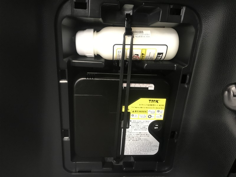 パンクした時も御心配なく。ラゲージサイド部にパンク修理キットが装備されています。JAFに未加入の方はこの際に御検討されては如何でしょうか?ロードサービス以外に会員優遇サービスも沢山有ります。