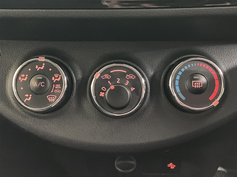 シンプルな配置で使いやすい位置にスイッチがあるマニュアルエアコン搭載車です。