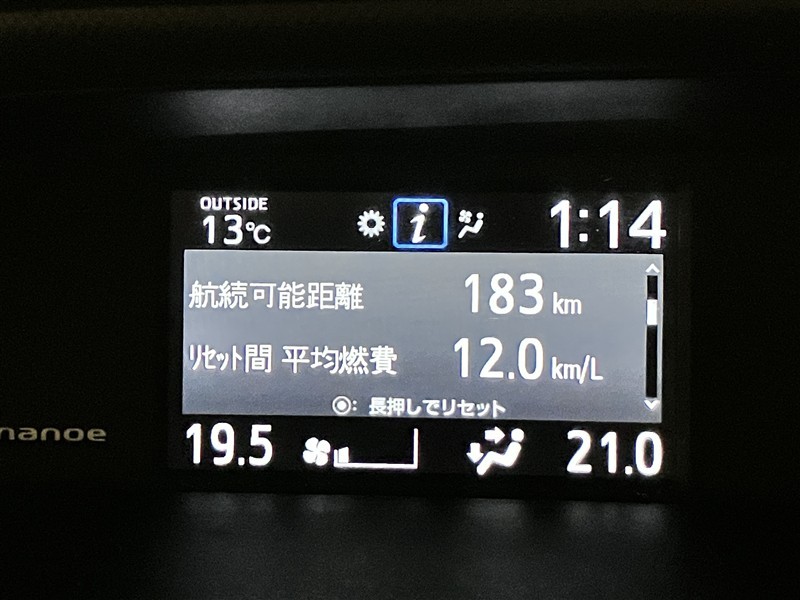 マルチインフォメーションディスプレイ内にて車両の各機能の詳細設定や燃費情報の確認を行います。