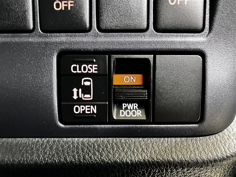 後席の左側電動スライドドアは運転席側からも操作できます。ON/OFFの切り替えが出来ますので、状況によって使い分けられます。