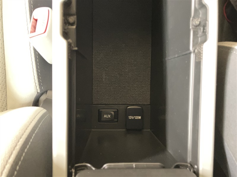 アームレスト内に12V/120Wのアクセサリーソケットと外部入力端子が配置されています。