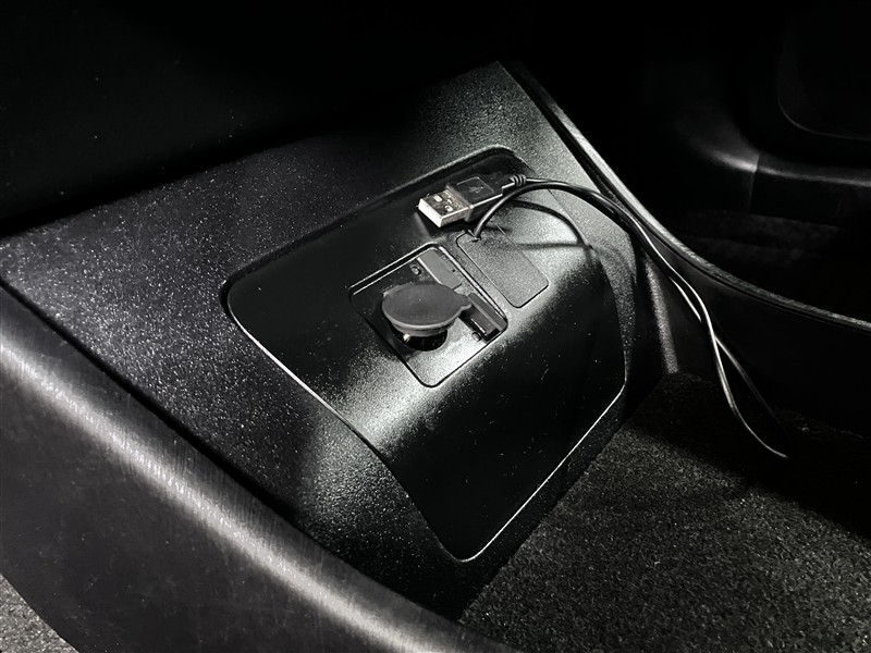 12V/120Wのアクセサリーソケットと充電用USB端子、オーディオ機器やスマートフォンを直接カーオーディオに接続できるUSBケーブルが配置されています。