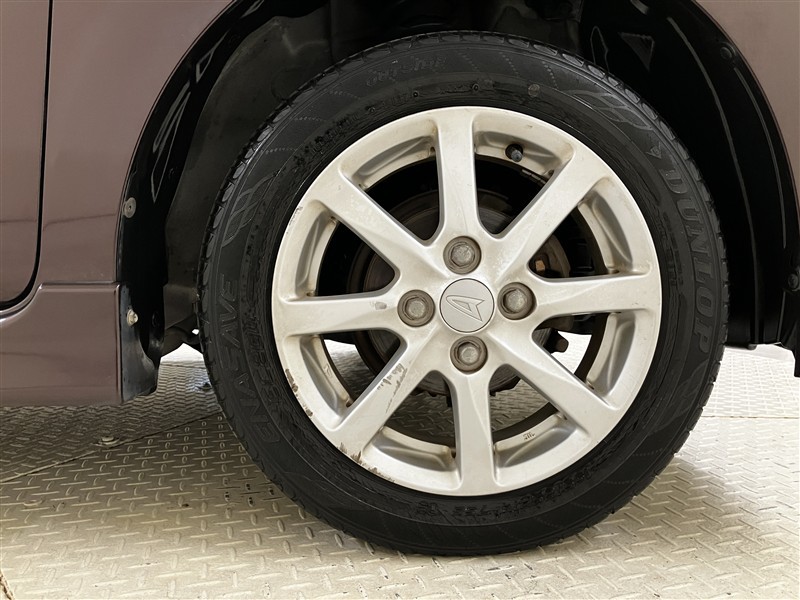 純正アルミホイールは精度や真円率が高く走行安定性・デザイン性ともに優れています。タイヤサイズは155/65R14です。