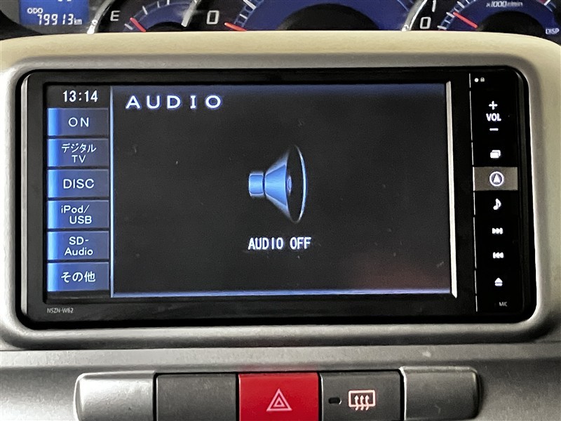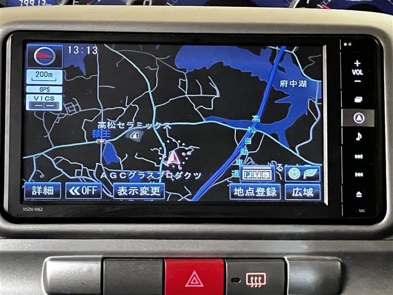 純正SDナビ付きです。フルセグでテレビも視聴出来て、CD・DVDの再生も出来ます。品番はNSZN-W62です。