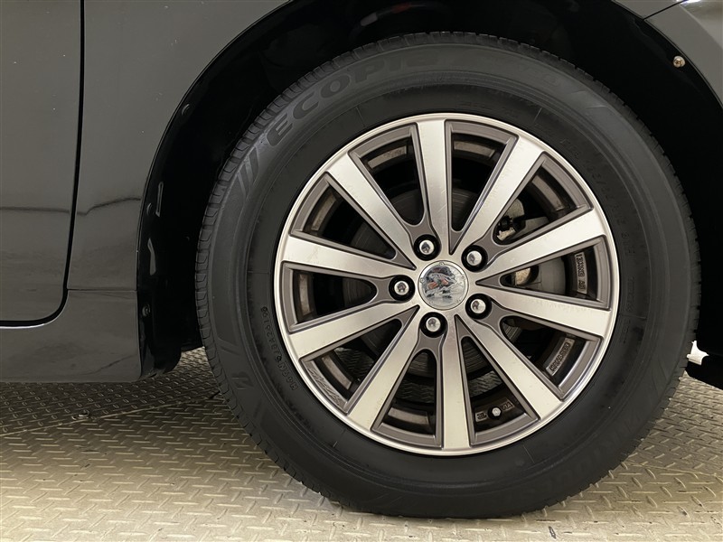 切削光輝+ダークグレーメタリック塗装の社外品のアルミホイールを装着しています。タイヤサイズは195/65R15です。