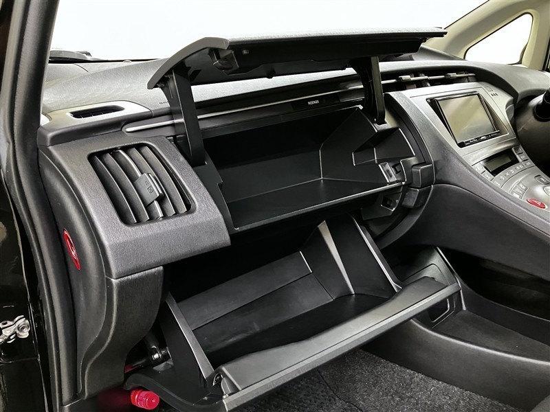 助手席前の収納はアッパーボックスとグローブボックスの上下に分かれて開閉します。
