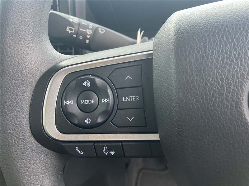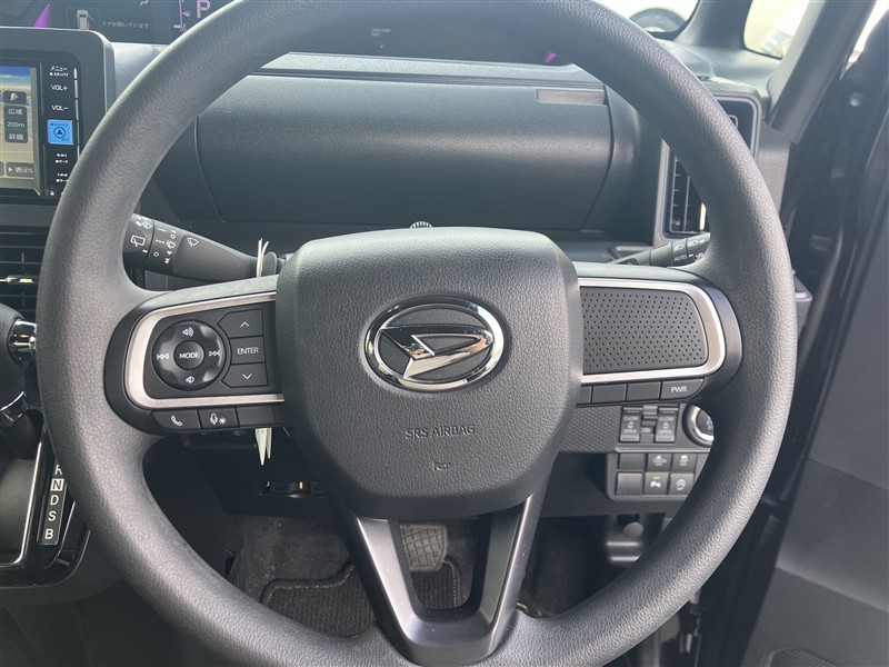 ステアリングスイッチ付き。前方から目を離すことなくオーディオ類を操作することが可能です。