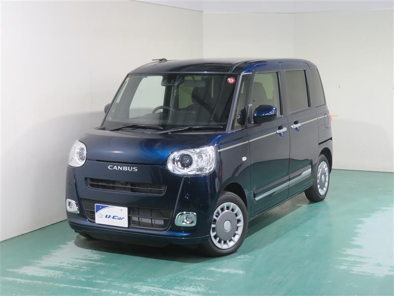 親しみやすいデザインのムーヴキャンバス。機能性と安全性能に優れ、両側パワースライドドアも搭載した使いやすいクルマです!