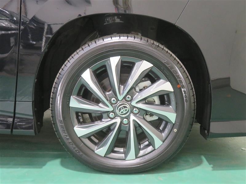 純正アルミホイール装着。スチールホイールより重量が軽いため、燃費や走行性能が向上するアイテムです。
