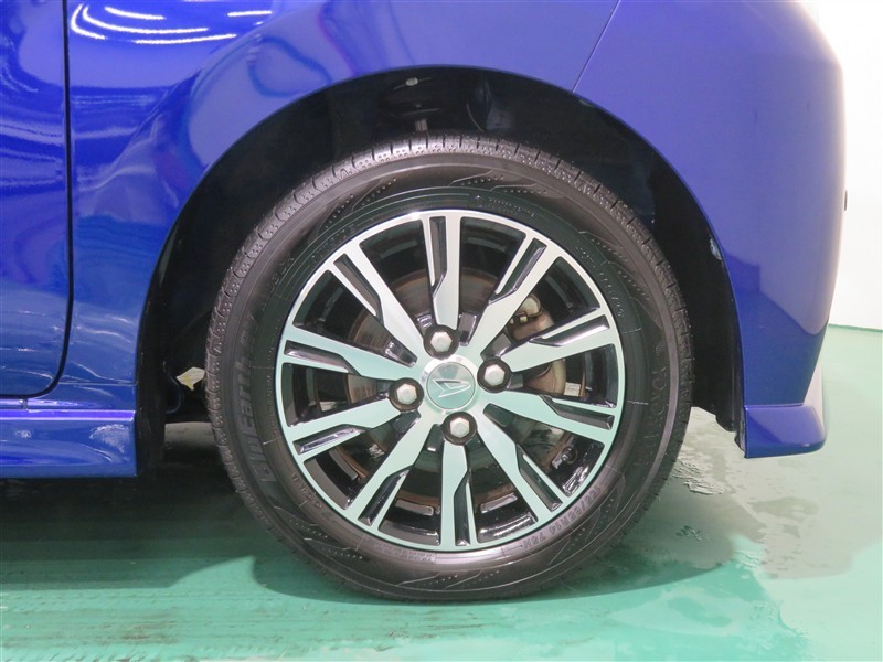 純正アルミホイール装着。スチールホイールより重量が軽いため、燃費や走行性能が向上するアイテムです。