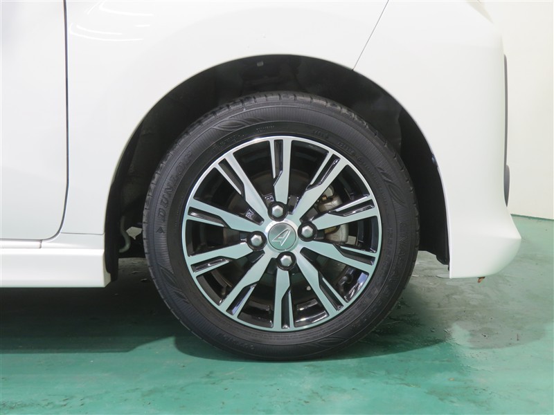 純正アルミホイール装着。スチールホイールより重量が軽いため、燃費や走行性能が向上するアイテムです。
