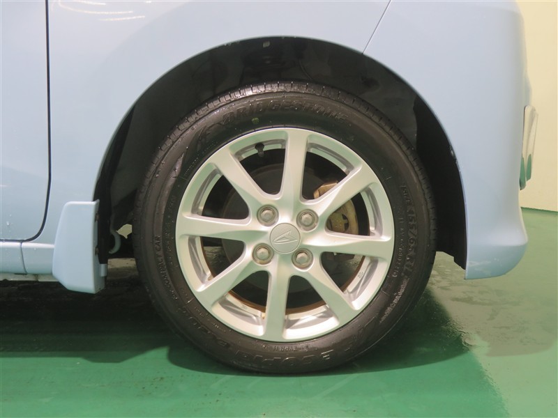 純正アルミホイール装着。スチールホイールより重量が軽いため、燃費や走行性能が向上するアイテムです。