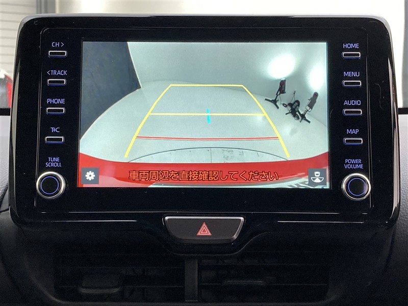 こちらのバックカメラは画面にラインが表示されておりますので、バック時のクルマの進行方向の目安になります。より高いレベルで車庫入れをサポートする、便利な機能ですね。