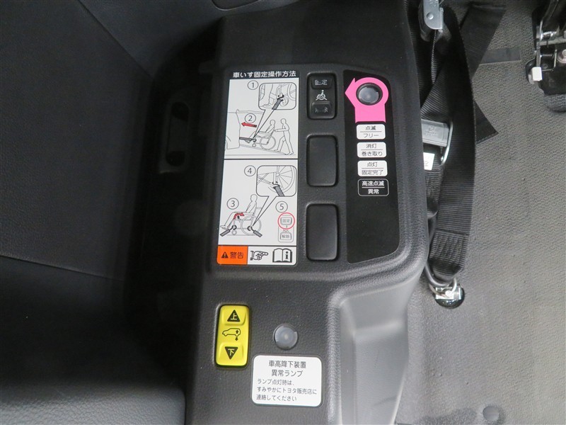 車いす固定用の電動ウィンチ。車いす乗車時には車両後部の車高を下げられます。