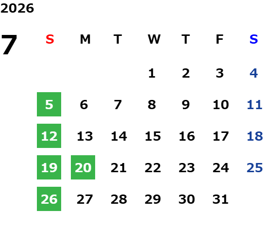 営業日カレンダー