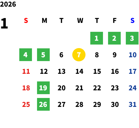 2026年1月7日は会社行事の為13:00からの営業となります