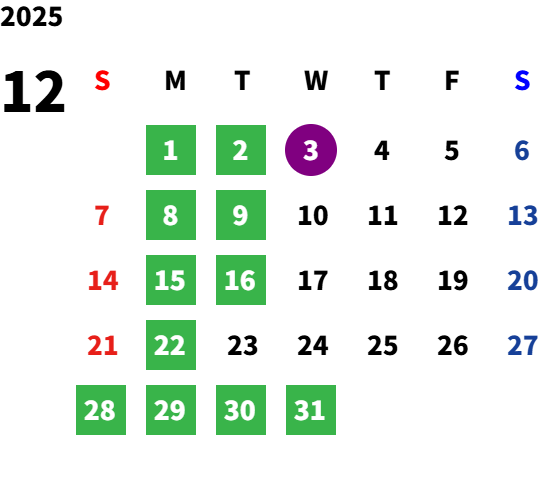 2026年1月以降の休業日等は追って更新いたします。