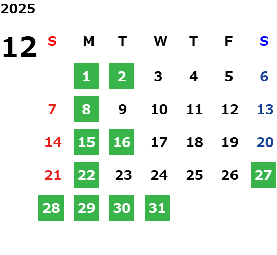営業日カレンダー