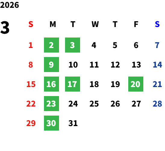 営業日カレンダー