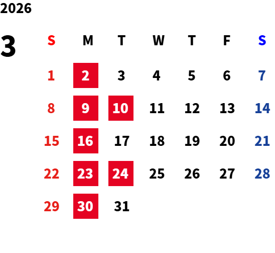 営業日カレンダー