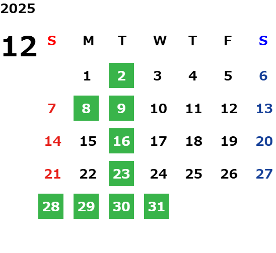 営業日カレンダー