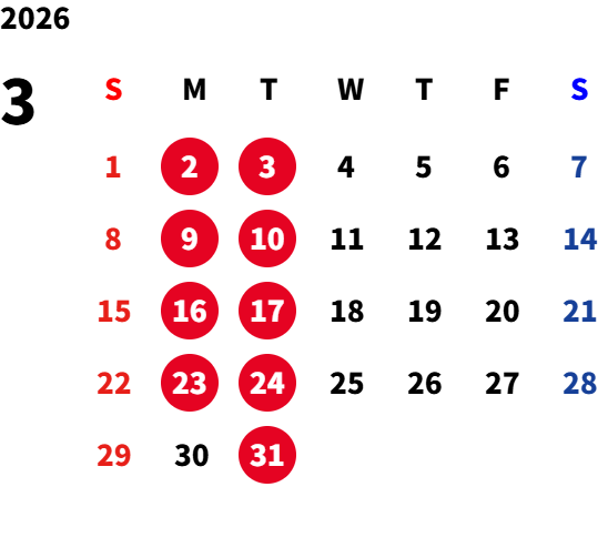 月曜日・火曜日 ※祝祭日の場合は営業