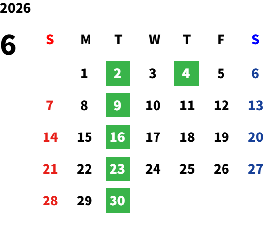 毎週火曜日(詳しくは営業カレンダーをご確認ください)