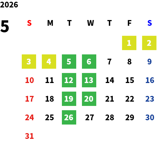 毎週火曜日、第二・第三水曜日