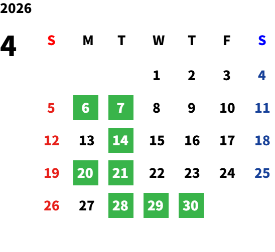営業日カレンダー