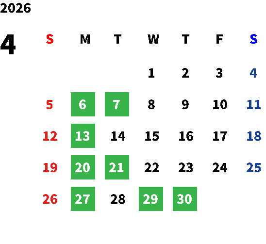 毎週月曜日、毎月第1・第3火曜日