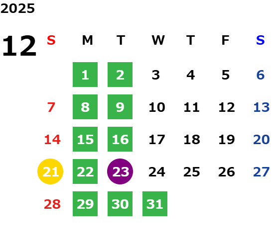営業日カレンダー