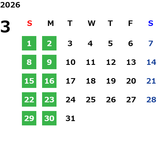 営業日カレンダー