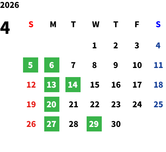 営業日カレンダー