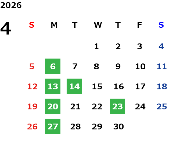 営業日カレンダー