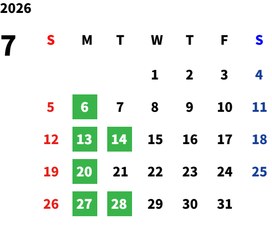 毎週月曜日及び毎月第2火曜日