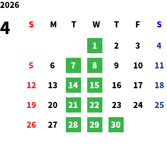 店舗定休日(店舗により定休日が異なります。各店舗ページのカレンダーにてご確認ください。)