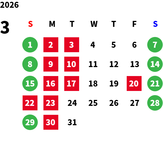 営業日カレンダー