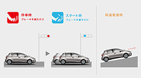 *1.セーフティ・サポートカーS〈ワイド〉(サポカーS〈ワイド〉)、セーフティ・サポートカー(サポカー)は、政府が交通事故防止対策の一環として普及啓発しているものです。自動(被害軽減)ブレーキ(対歩行者)やペダル踏み間違い時加速抑制装置など安全運転を支援する装置を搭載し、高齢者を含む全てのドライバーの安全をサポートします。