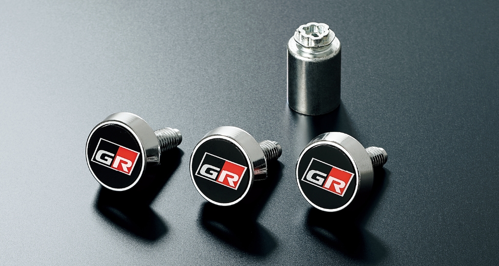 GRナンバーフレーム(フロント&リヤ)+ロックボルト(ナンバープレート用)のセット。